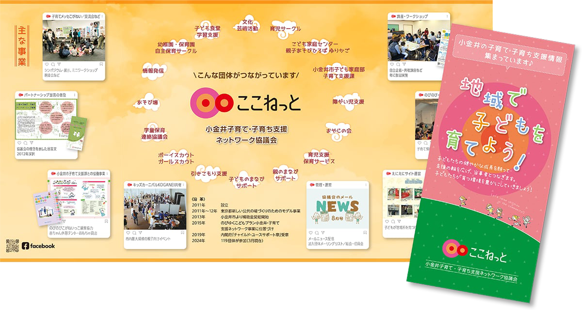 小金井子育て・子育ち支援ネットワーク協議会(ここねっと)のリーフレットが新しくなりました。(2024年3月発行)